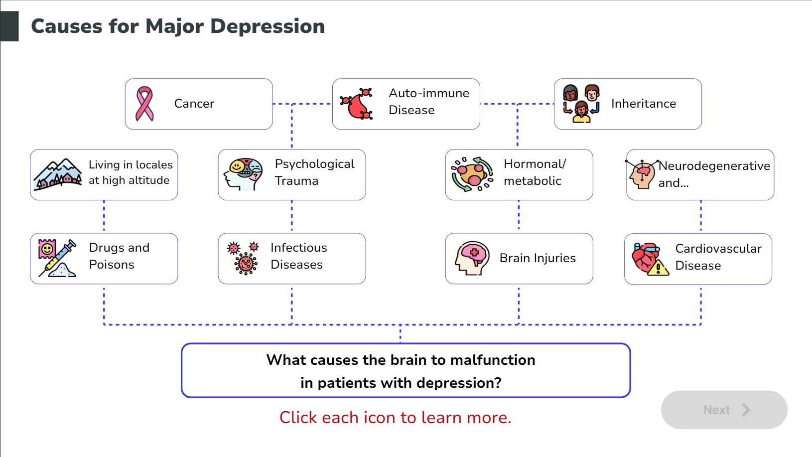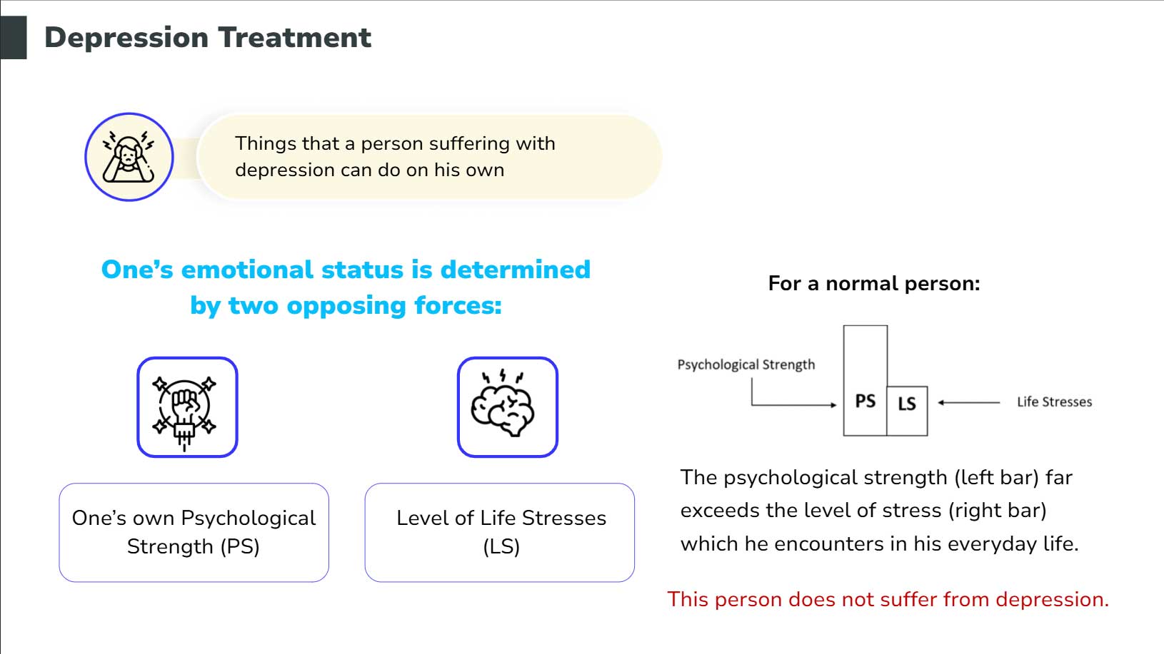 I created a visual representation of Psychological Strength (PS) vs. Life Stress (LS). By using interactive elements, learners can see how clinical treatment and lifestyle changes physically “raise” their strength bars.